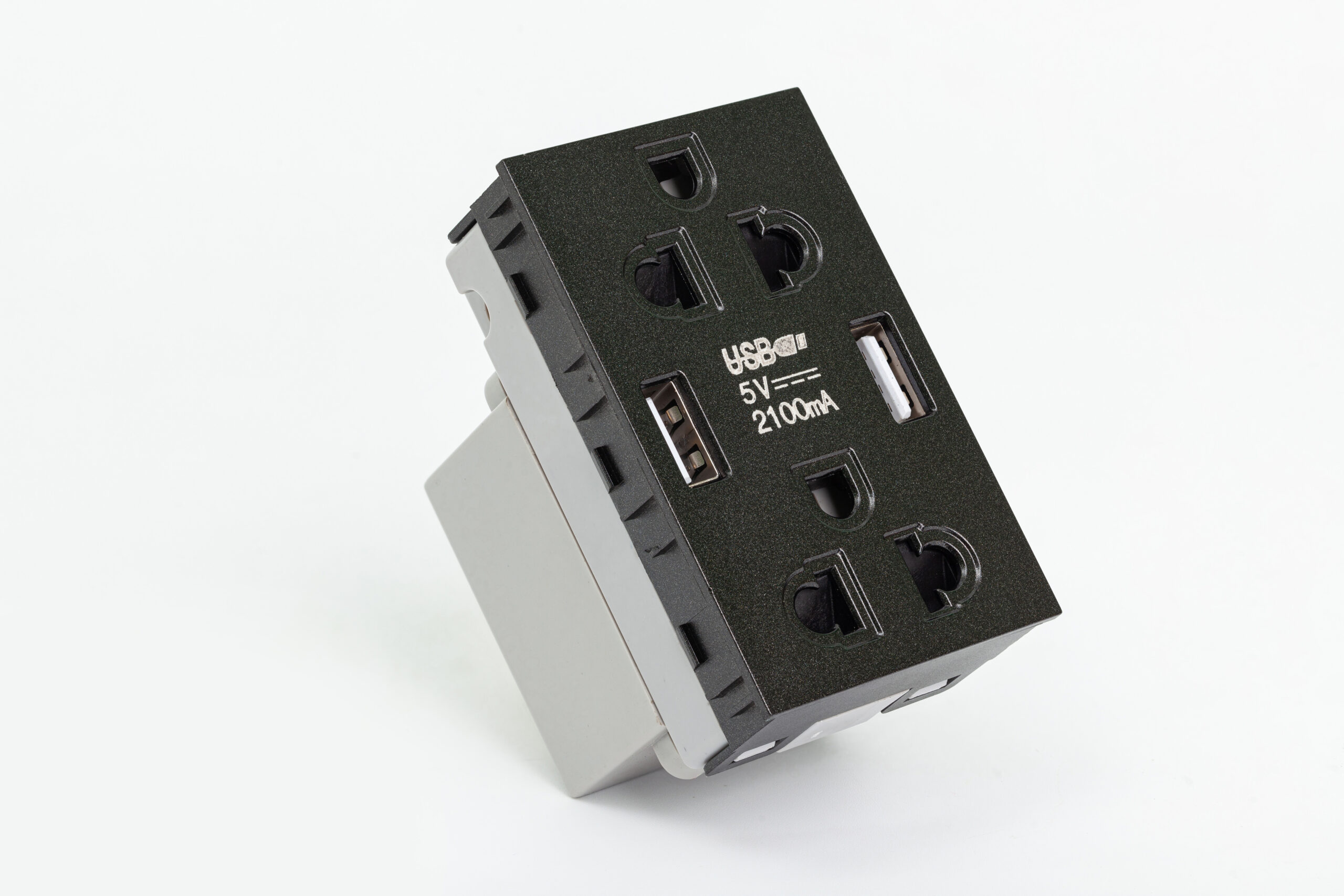 - Dòng công tắc 2 cổng cắm 3 chân, 2 cổng usb