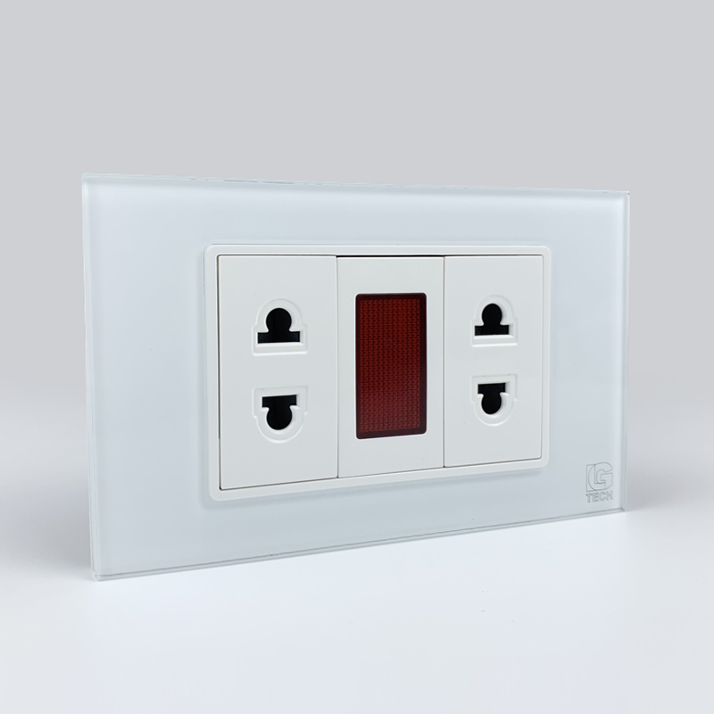 Mô đun 2 ổ cắm 2 chấu và đèn báo, viền kính màu trắng LG Tech – Tiện ích đa năng, thiết kế hiện đại
