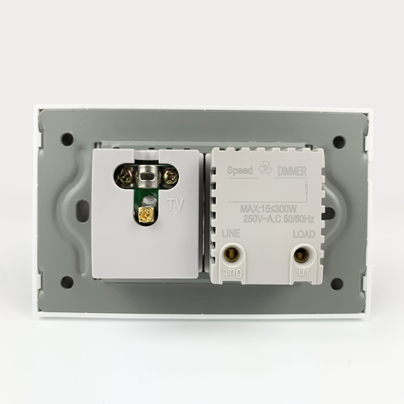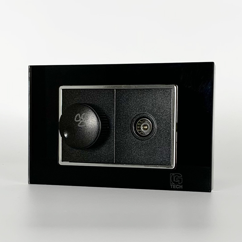 Mô đun công tắc quạt và ổ cắm tivi, size 36mm viền kính màu đen LG Tech – điều khiển tiện lợi, truyền tín hiệu ổn định