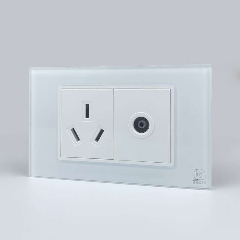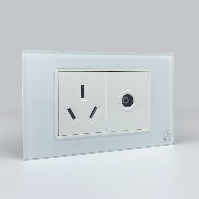 Mô đun ổ cắm chân chim và ổ cắm tivi, size 36mm viền kính màu trắng LG Tech – Kết nối điện và giải trí tối ưu