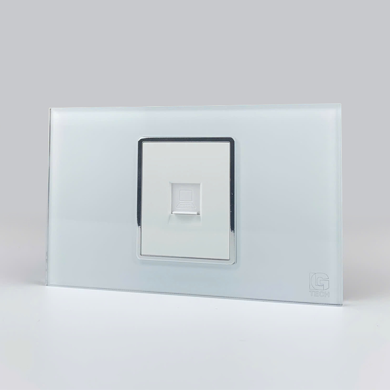 Mô đun ổ cắm mạng LAN CAT5, size 36mm viền kính màu trắng LG Tech – Tốc độ kết nối vượt trội, thiết kế tinh tế