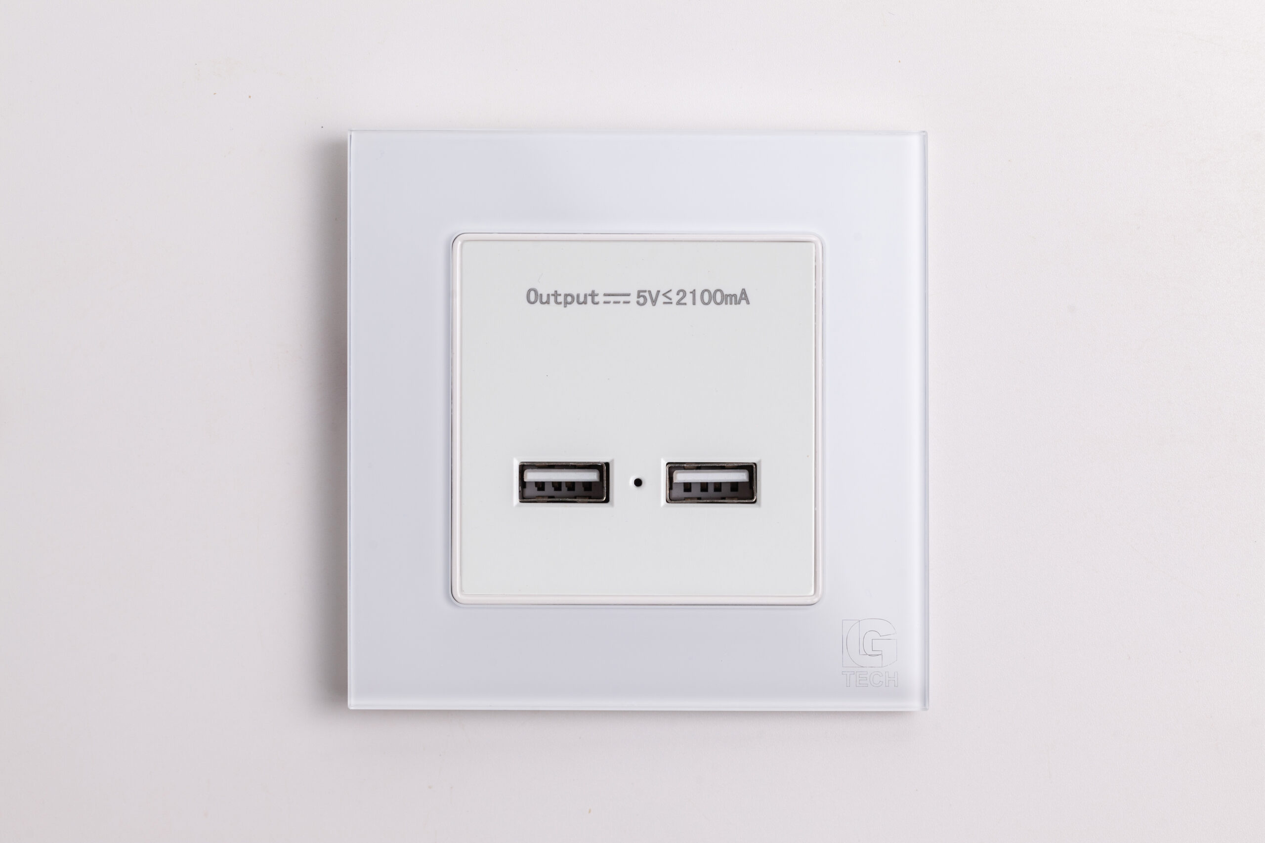 Ổ cắm âm tường 2 cổng USB, viền kính màu trắng LG Tech mã LG-F71W-033