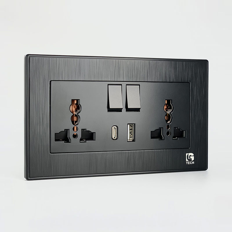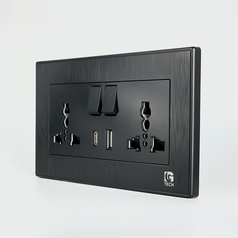 Ổ điện âm tường 3 chấu đôi có USB và Type-C LG Tech – Sạc nhanh, kết nối tiện lợi trong một thiết bị